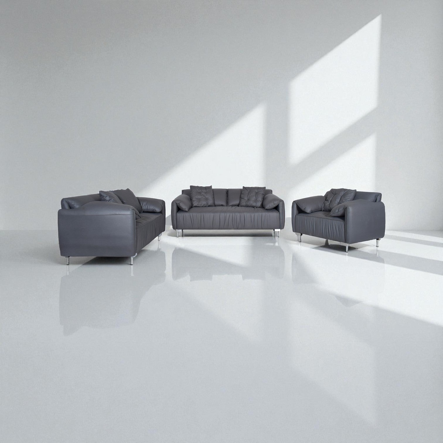 In open-plan homes or large living areas, the set can serve as the main lounge seating anchor. The steel legs give visual lightness, helping the sofa avoid feeling heavy.