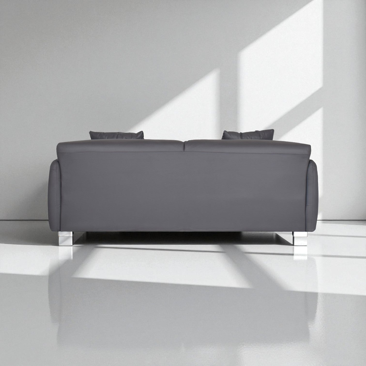 • Features sleek modern lines, generously padded arms, and stainless-steel legs for durability and style. Furniture Walla